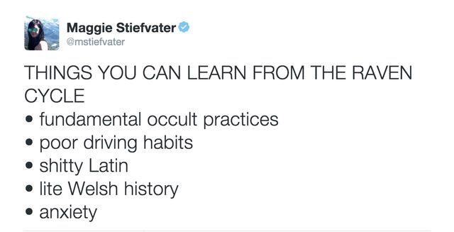 Now, I’m going to gush a bit about Blue and how badass she is. I love her fierce attitude, her snarky comebacks, and how she stays grounded surrounded by mayhem and magical people. I also adore seeing Gansey through her eyes. When he loses the mannerisms of old money and careless comments, and becomes just a boy in glasses looking for something to make him feel worthy of each breath.